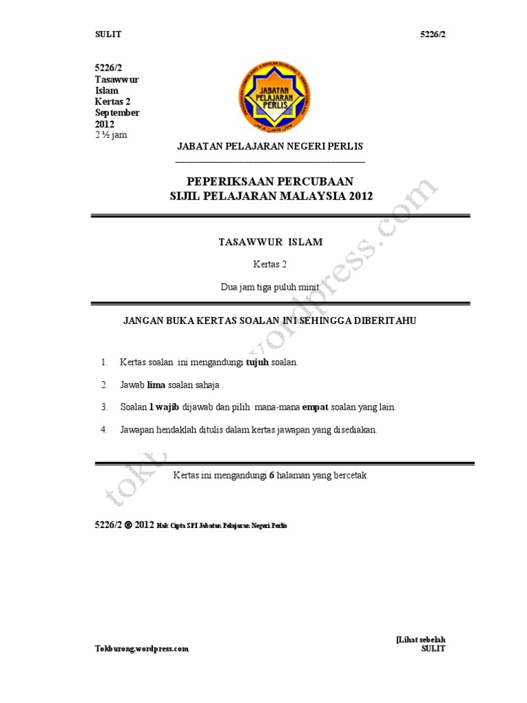 Contoh Soalan Spm Tasawwur Islam Viral Blog 0