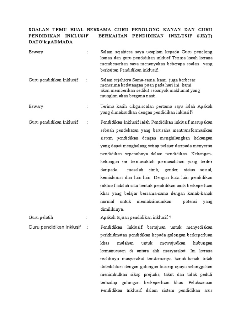 Soalan Temu Bual Bersama Guru Pemulihan Khas Documents