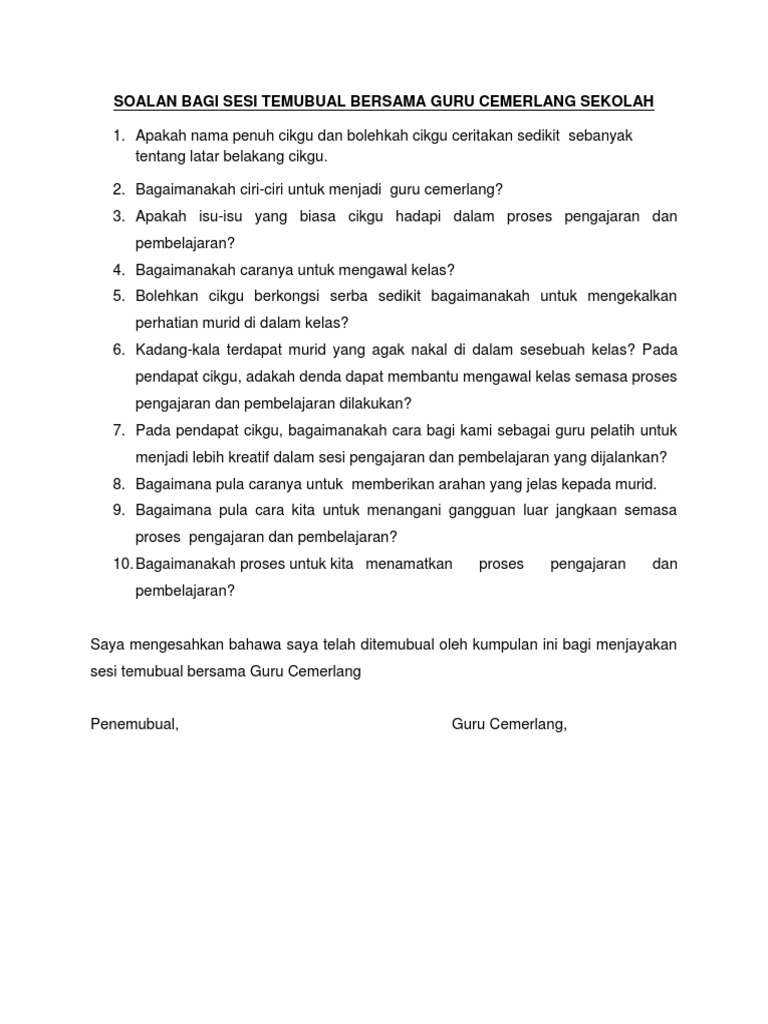 Contoh Soalan Temubual Bersama Guru Cemerlang Viral Blog B