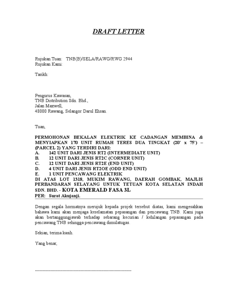 Contoh Surat Permohonan Bekalan Elektrik Tnb Cute766