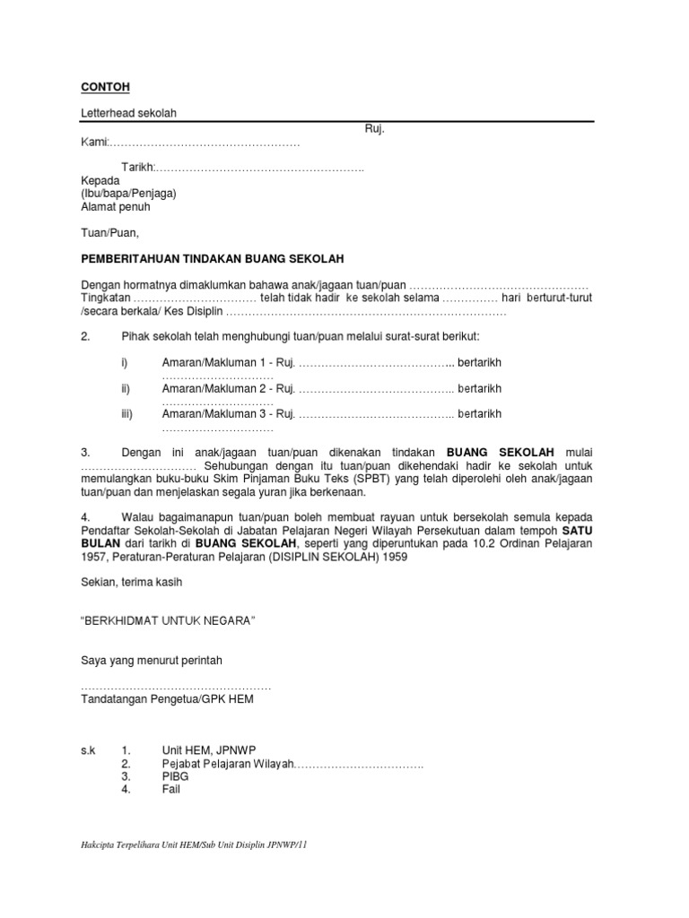 Contoh Surat Buang Sekolah Ponteng Sekolah Rendah