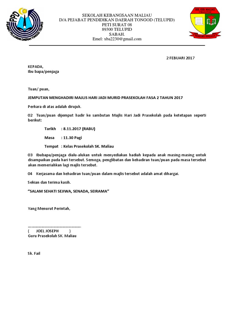 Contoh Surat Jemputan Hari Jadi