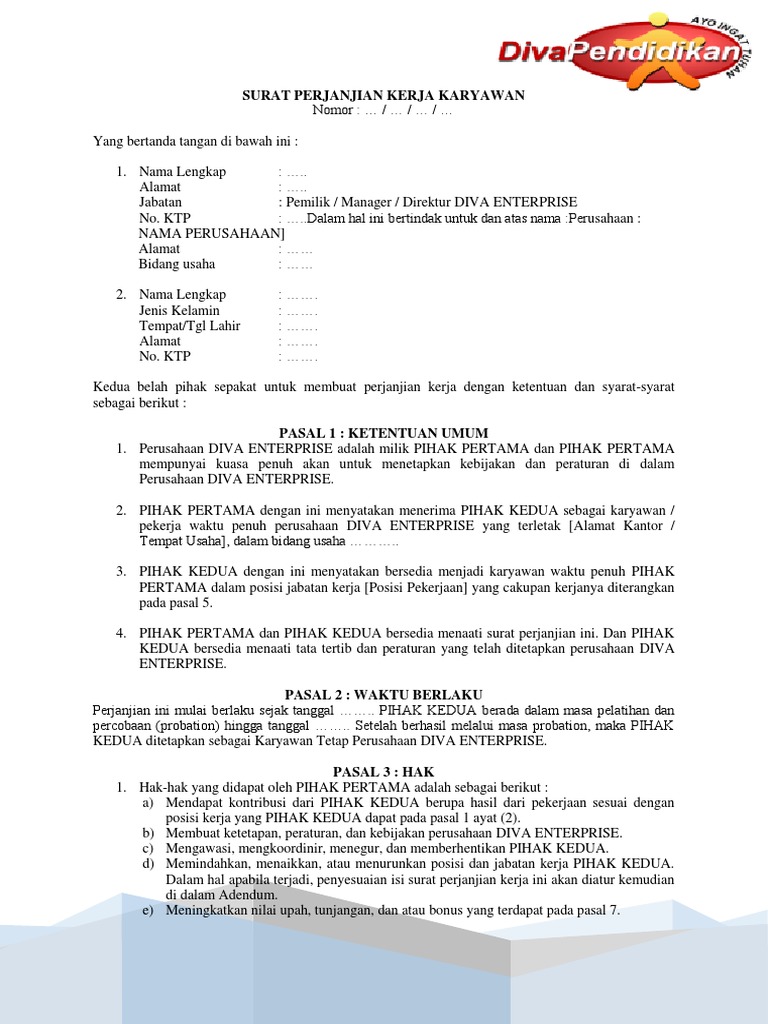 Contoh Kontrak Kerja Karyawan Yang Sesuai Peraturan Di Indonesia