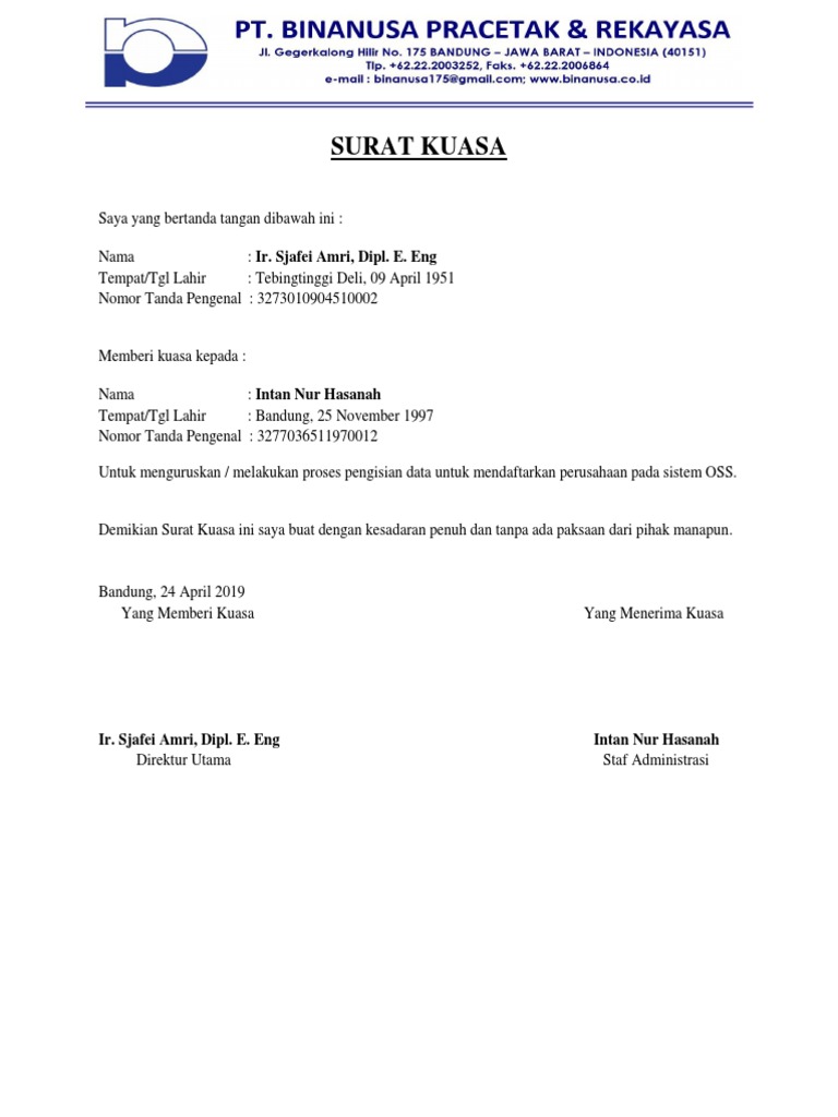 Contoh Surat Kuasa Dalam Bahasa English