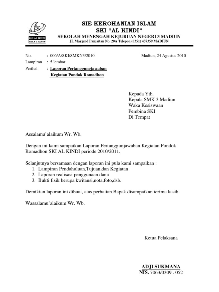 Contoh Surat Laporan Kegiatan Sekolah
