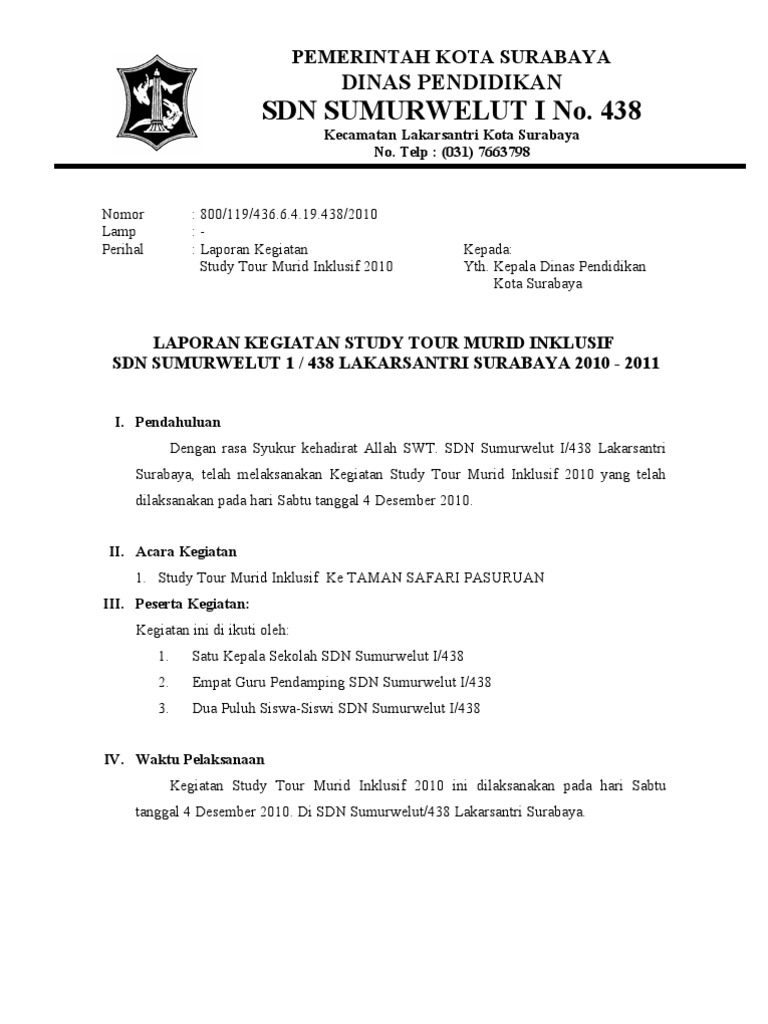Contoh Surat Rekomendasi Aktivitas Sekolah Wacana Study Tour Wisata Media Belajar