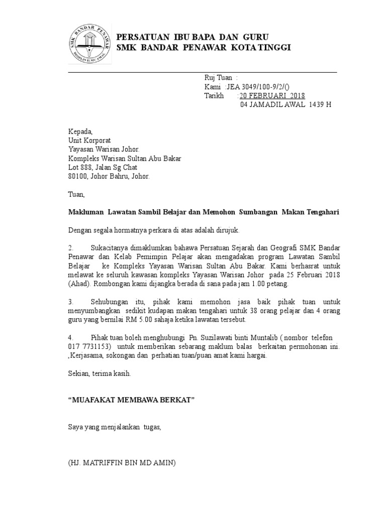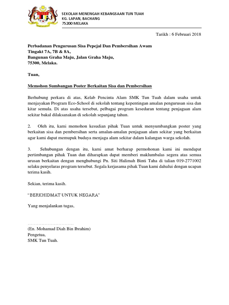 Surat Perhargaan Dan Terima Kasih Atas Sumbangan