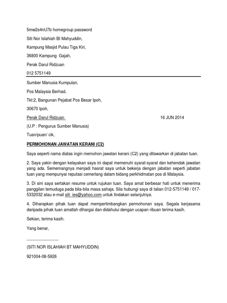 Contoh Surat Permohonan Kerja Kerani Dalam Bahasa Inggeris Kerja Kosk