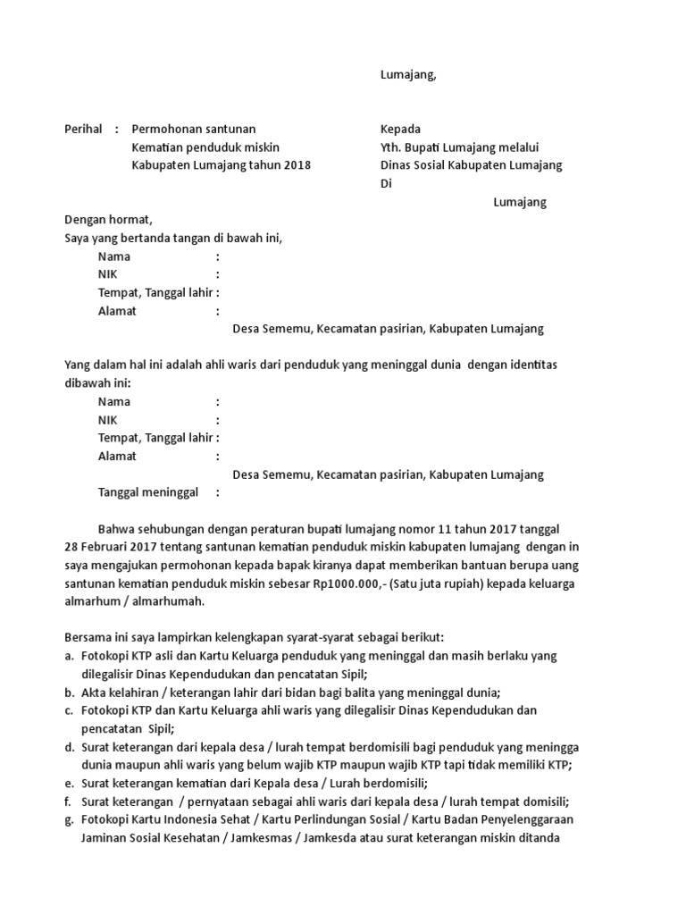 Permohonan Bantuan Uang Duka Kepada Yth Bupati Kudus Melalui Kepala Dinas Sosial Tenaga Kerja Dan Transmigrasi Kabupaten Kudus Pdf Download Gratis