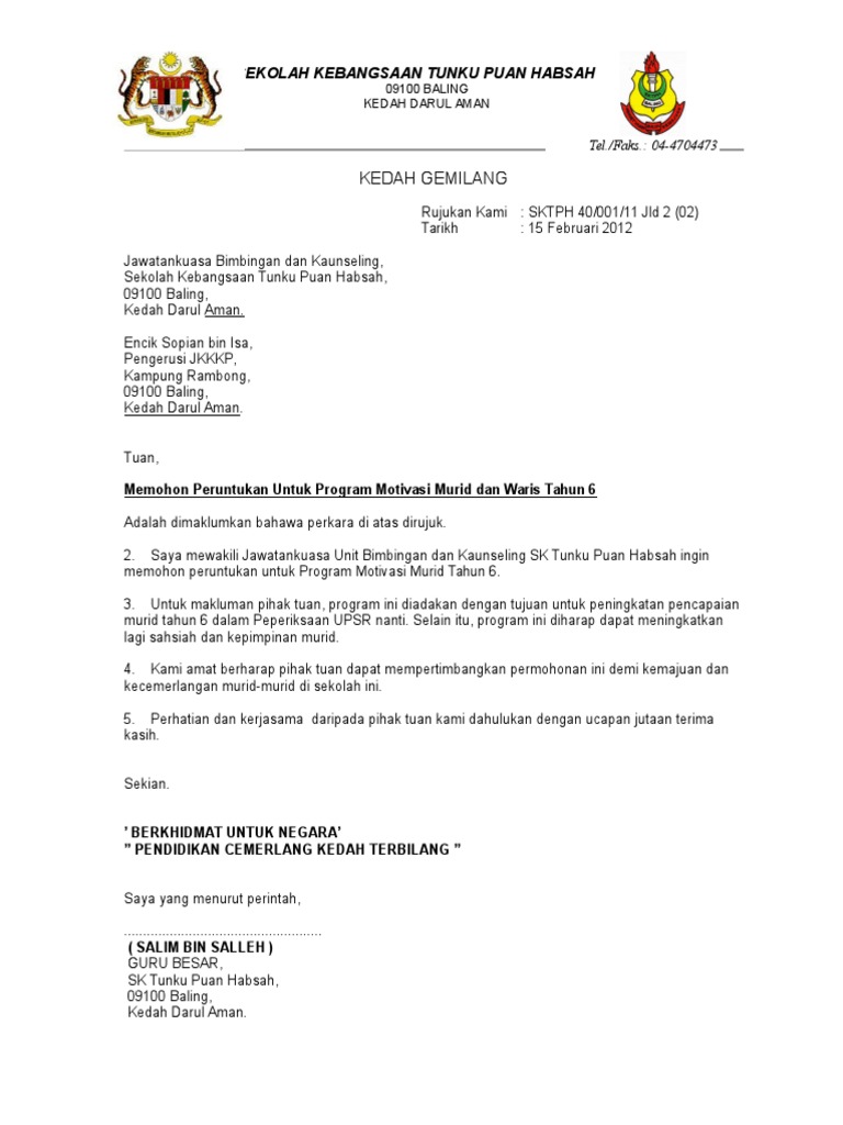 Contoh Surat Memohon Sumbangan Atau Tajaan Pendidik2u