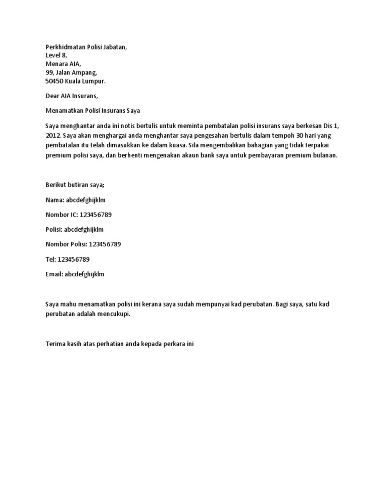 Download Surat Pembatalan Insurans Aia Docshare Tips