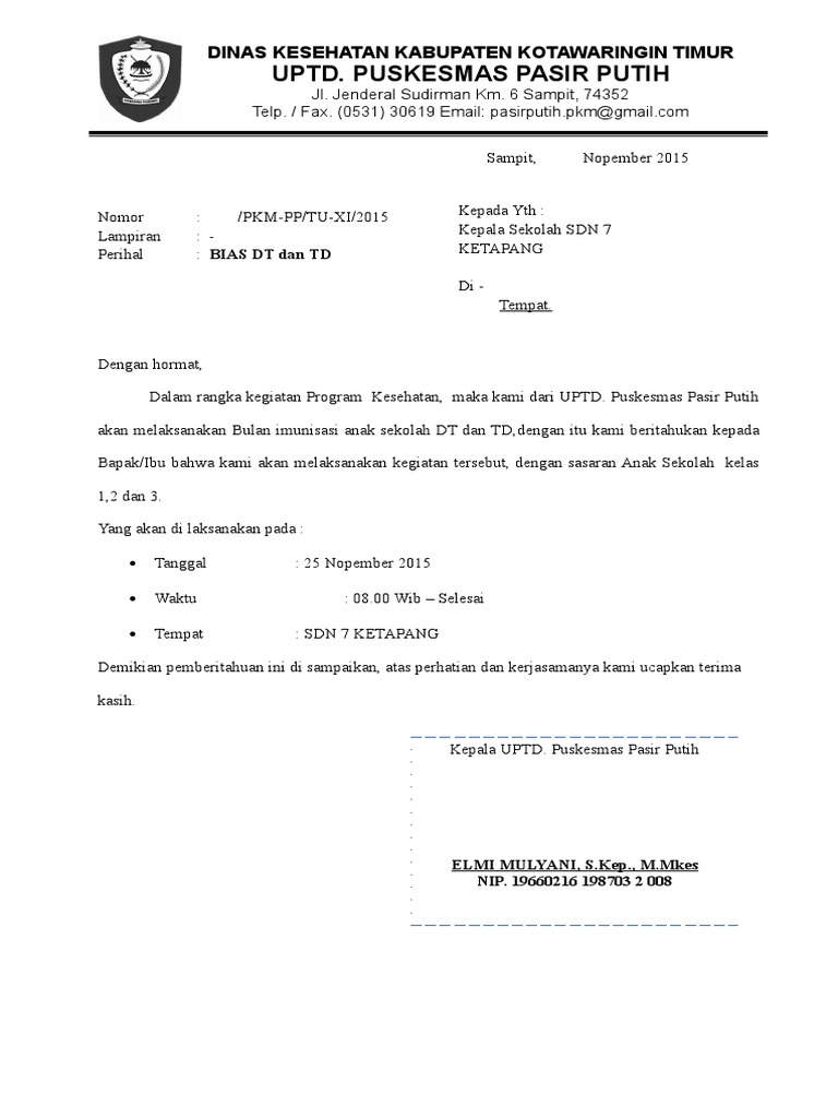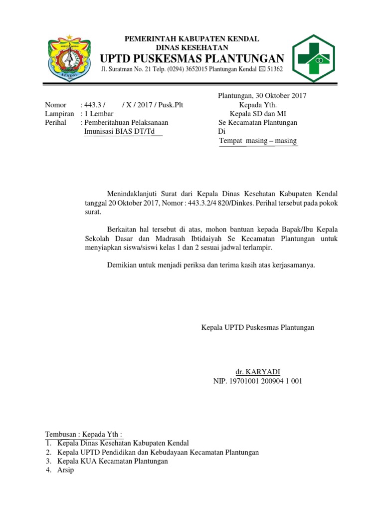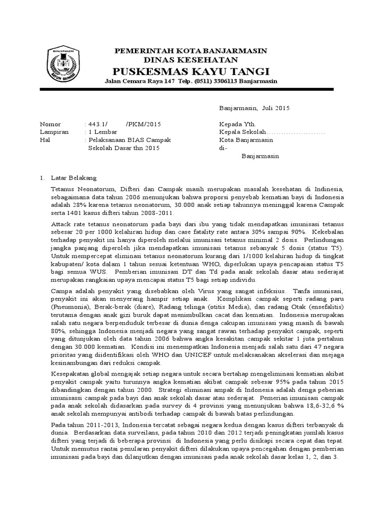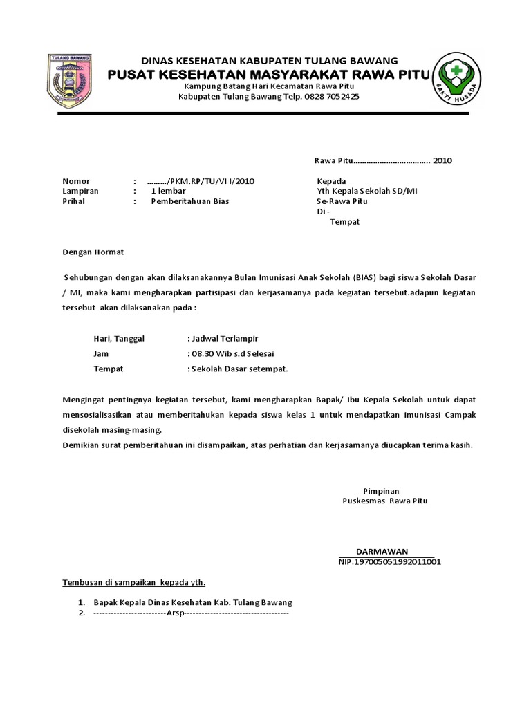 Contoh Surat Pemberitahuan Imunisasi Di Sekolah Kumpulan Surat Penting