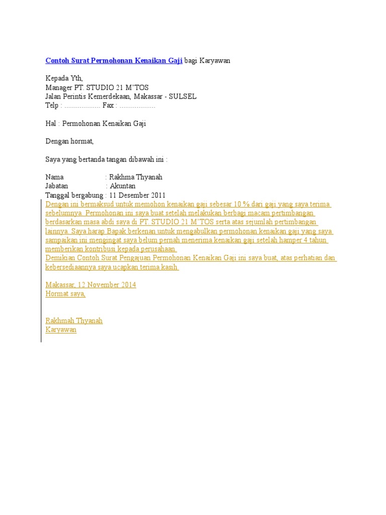 Doc Contoh Surat Kenaikan Gaji Karena Sudah Lama Bekerja Pezo Ganu Academia Edu