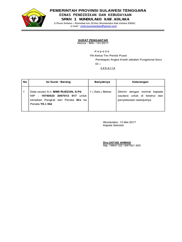 Contoh Surat Pengantar Usulan Kenaikan Pangkat Guru Kumpulan Surat Penting