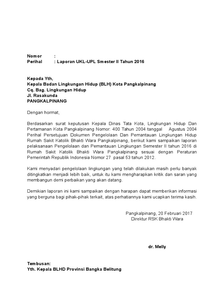 Surat Pengantar Laporan Izin Lingkungan Ukl Upl