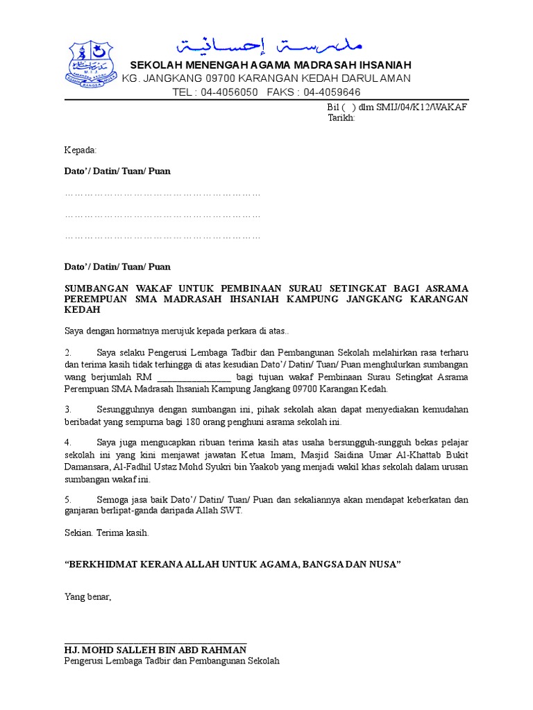 Contoh Surat Ucapan Terima Kasih Atas Sumbangan Kumpulan Surat Penting