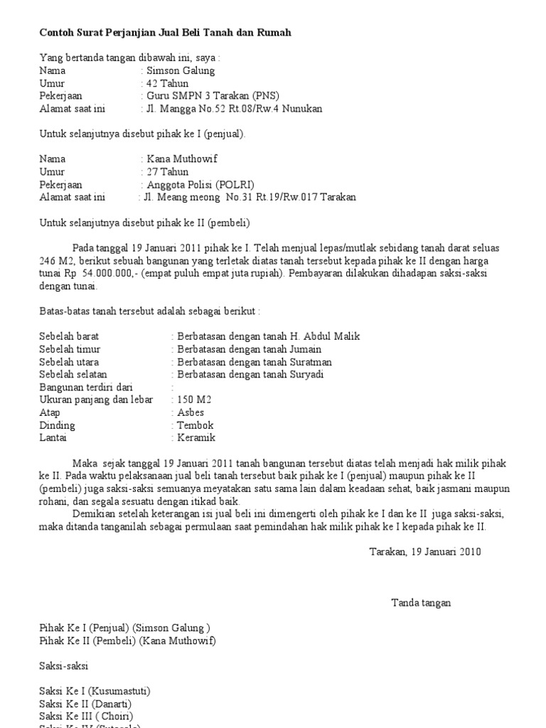 Surat Perjanjian Jual Beli Rumah Pdf Free Download