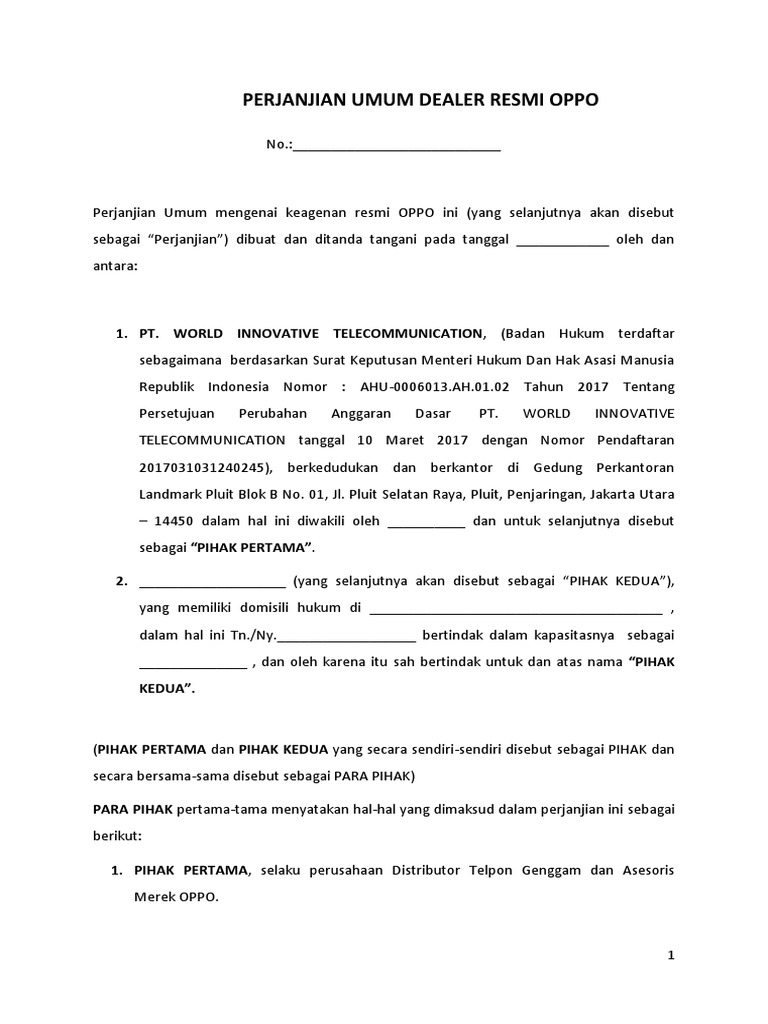 Final Draft Perjanjian Dealer Oppo Offline