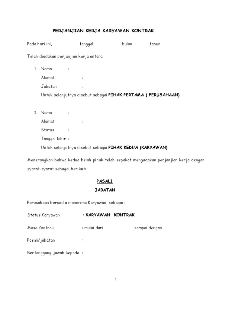 Contoh Kontrak Kerja Karyawan Terbaru File Word Doc Dan Pdf Mastimon Com
