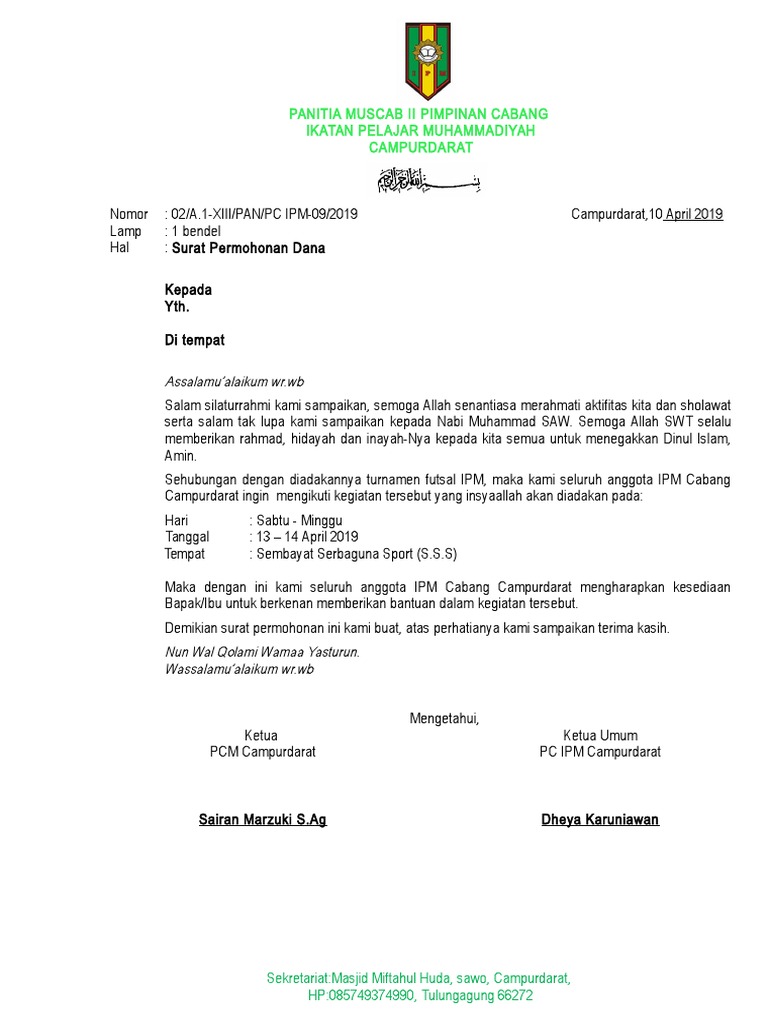 Surat Permohonan Dana Futsal Ipm