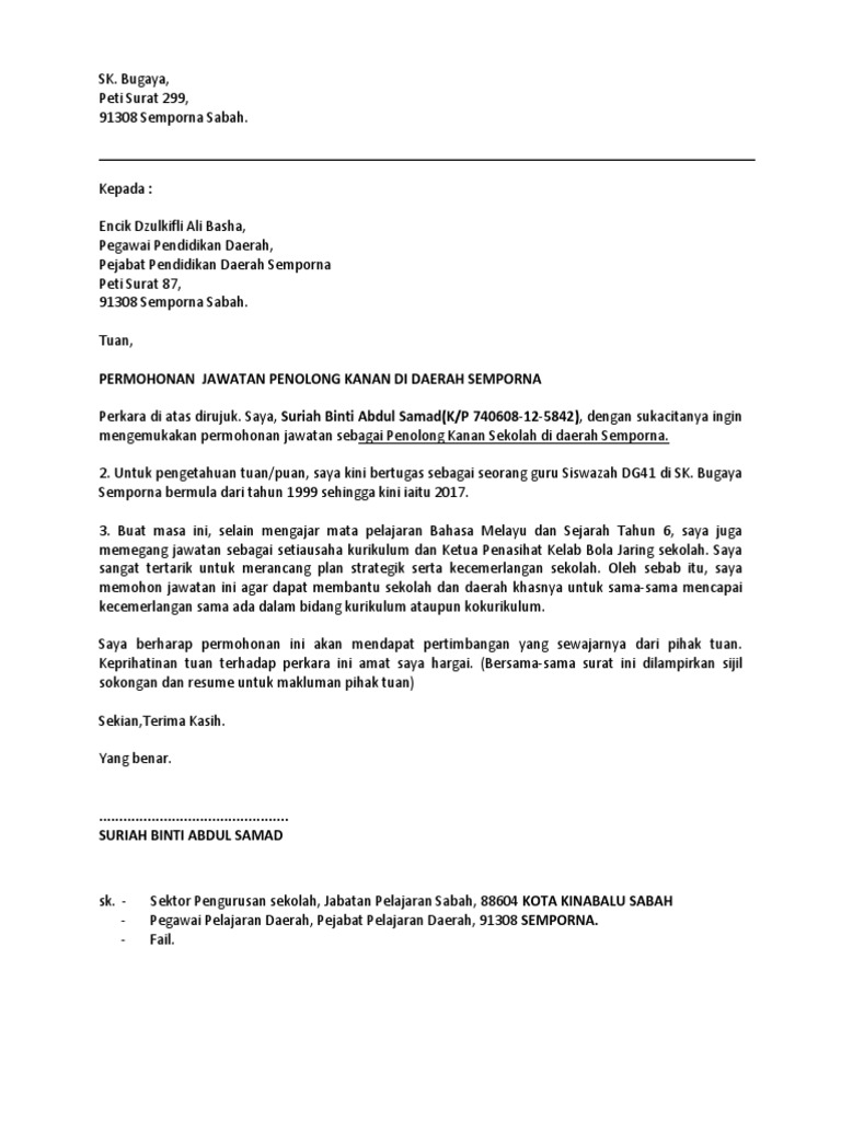Surat Permohonan Jawatan Guru Penolong Kanan J Kosong W