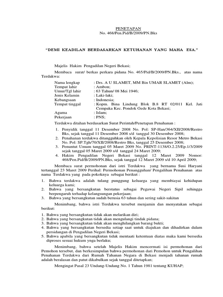 Contoh Surat Penangguhan Penahanan Di Pengadilan Negeri Kumpulan Surat Penting