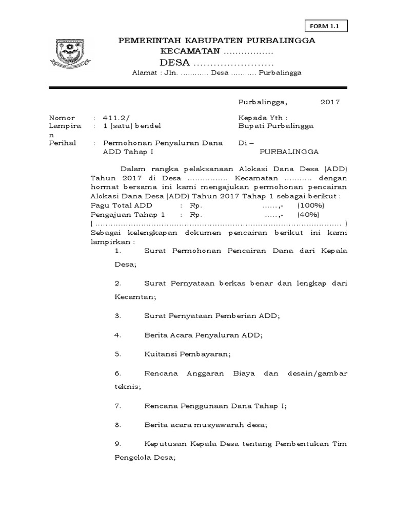 Format Terbaru Surat Permohonan Pencairan Dana Desa Format Administrasi Desa