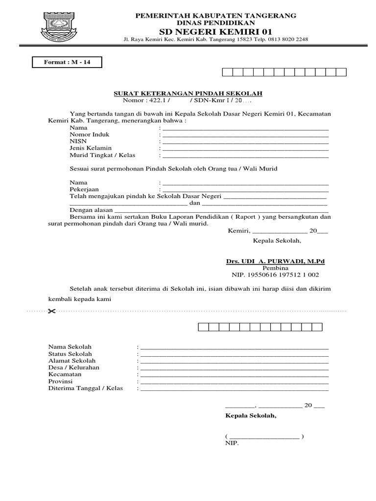 Surat Keterangan Pindah Sekolah Pdf