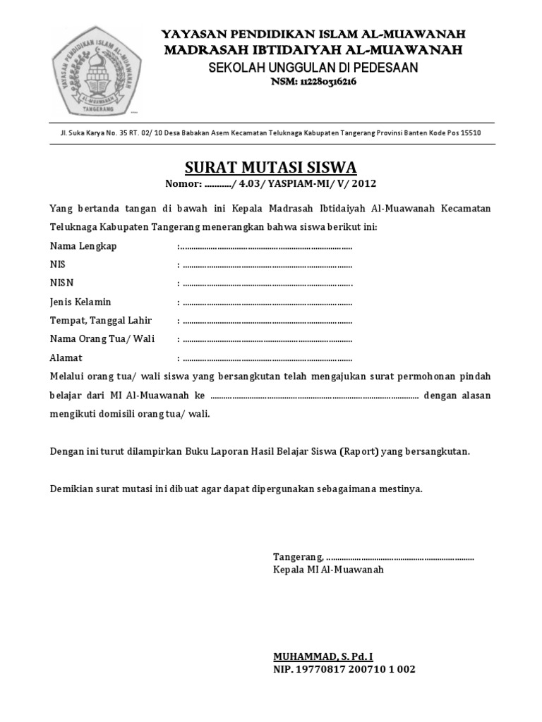 Surat Mutasi Siswa
