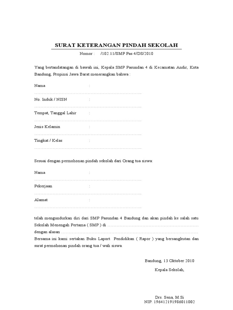 Surat Permohonan Pindah Sekolah Doc Kuora O