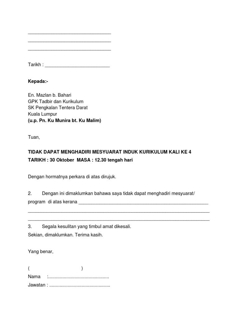 Contoh Surat Penjelasan Tdk Hadir Mesy
