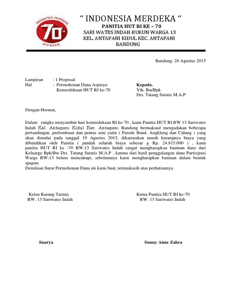 Contoh Surat Permohonan Dana Untuk Acara 17 Agustus Az Chords