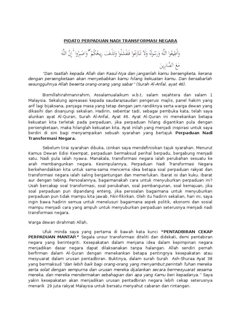 220432650 Teks Syarahan Docx Perpaduan Asas Kecemerlangan Negara Yang Mulia Tuan Pengerusi Majlis Barisan Panel Hakim Yang Adil Lagi Bijaksana Course Hero