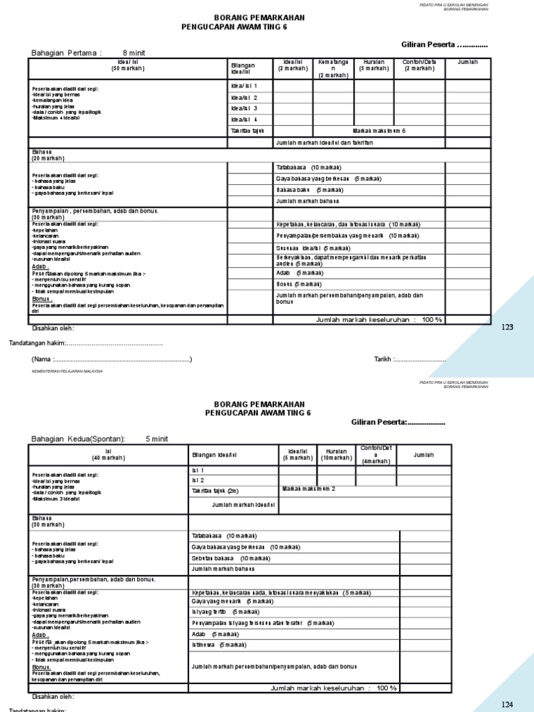 Borang Pemarkahan Pengucapan Awam Prauniversiti