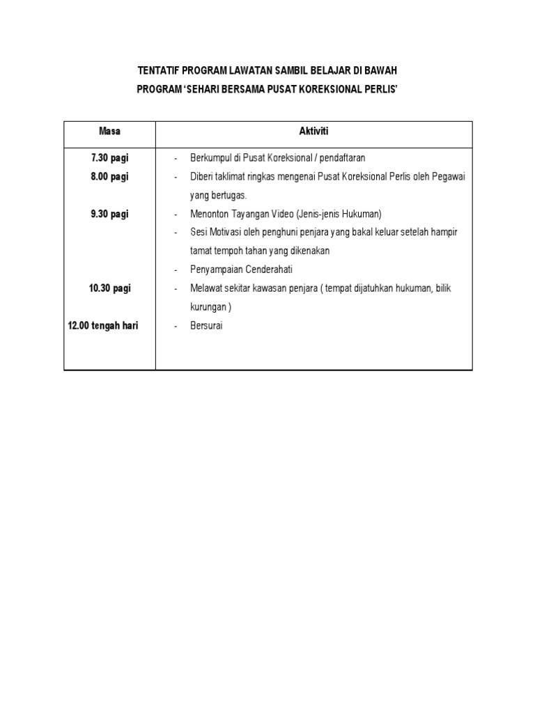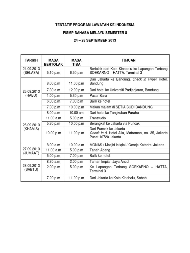 Tentatif Program Lawatan Sambil Belajar Di Bawah Docx