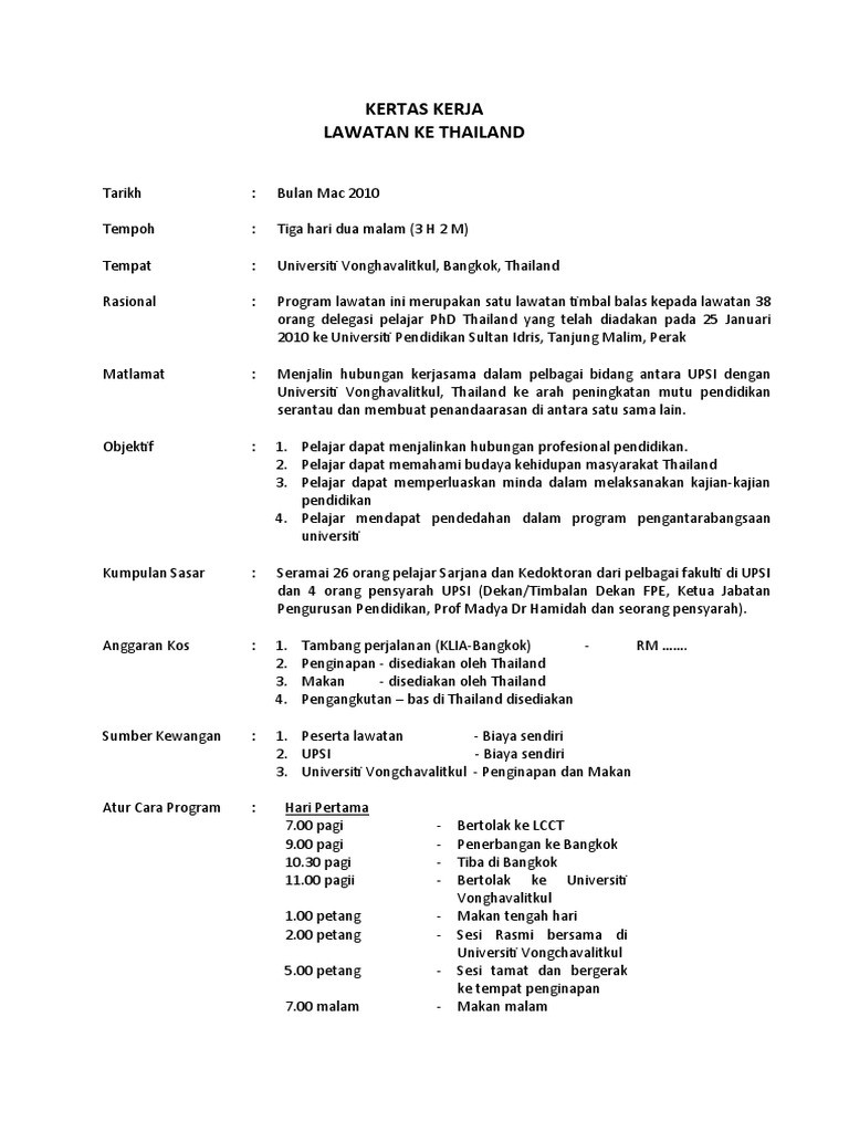 T B S Dokumen Contoh Kertas Kerja Lawatan