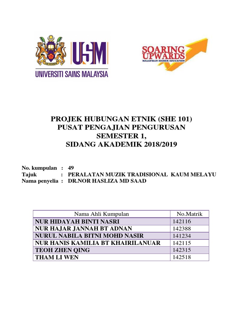 Projek Hubungan Etnik She 101 Pusat Pengajian Pengurusan Semester 1 Sidang Akademik 2018 2019
