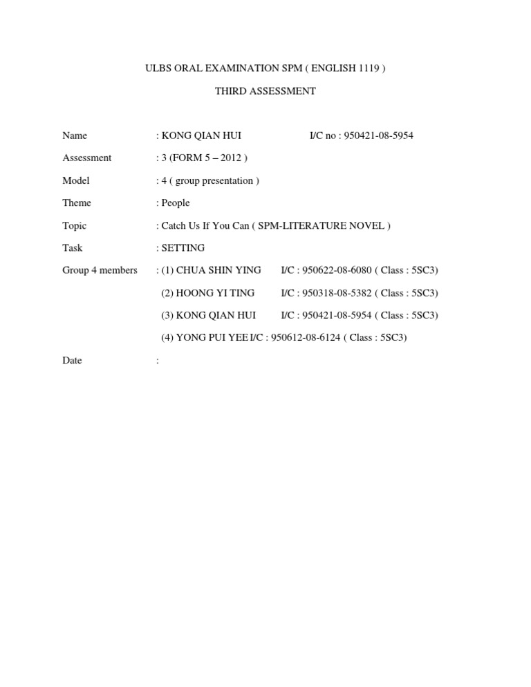 Borang Ujian Lisan Bahasa Inggeris Spm