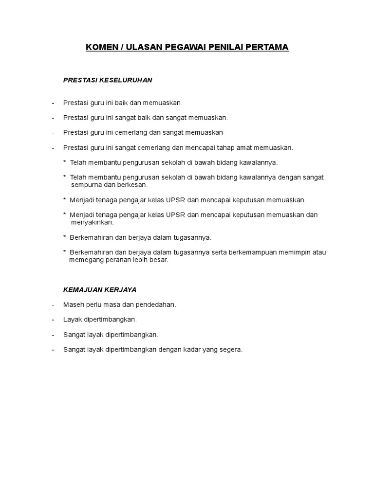 Contoh Ulasan Pegawai Penilai Pertama