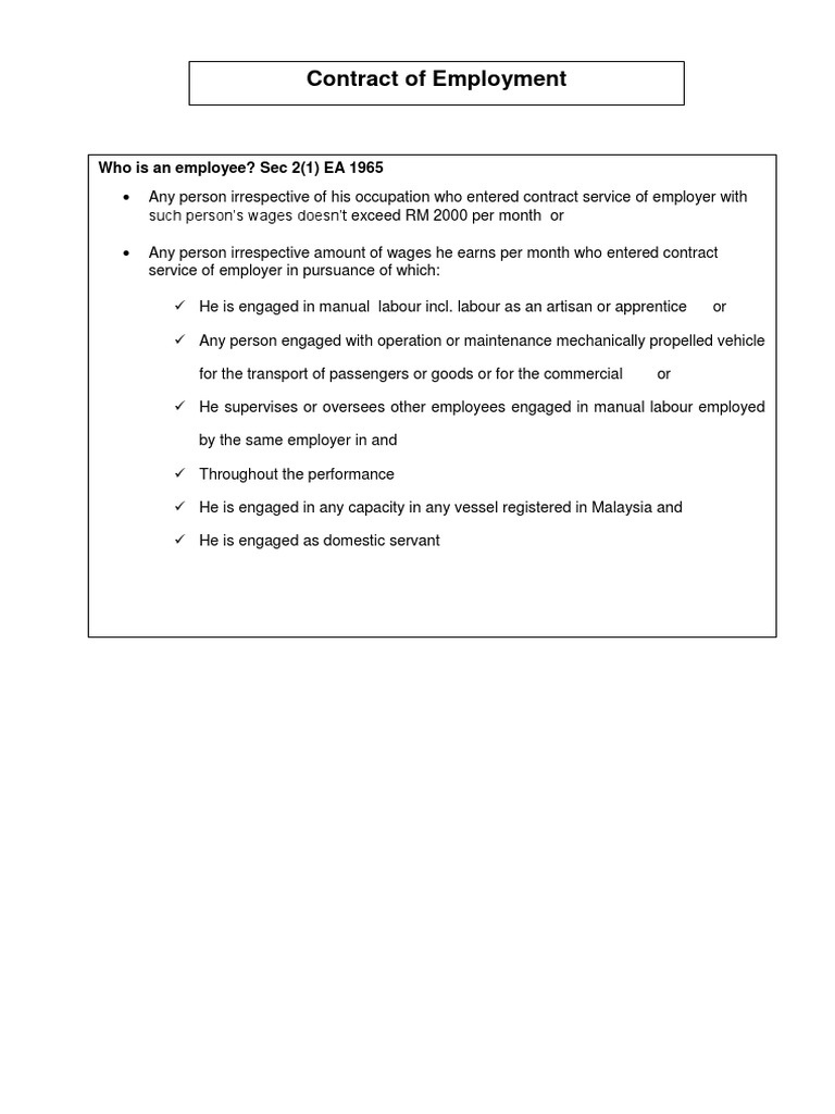 Contract Of Employment Who Is An Employee Sec 2 1 Ea 1965 Layoff Employment
