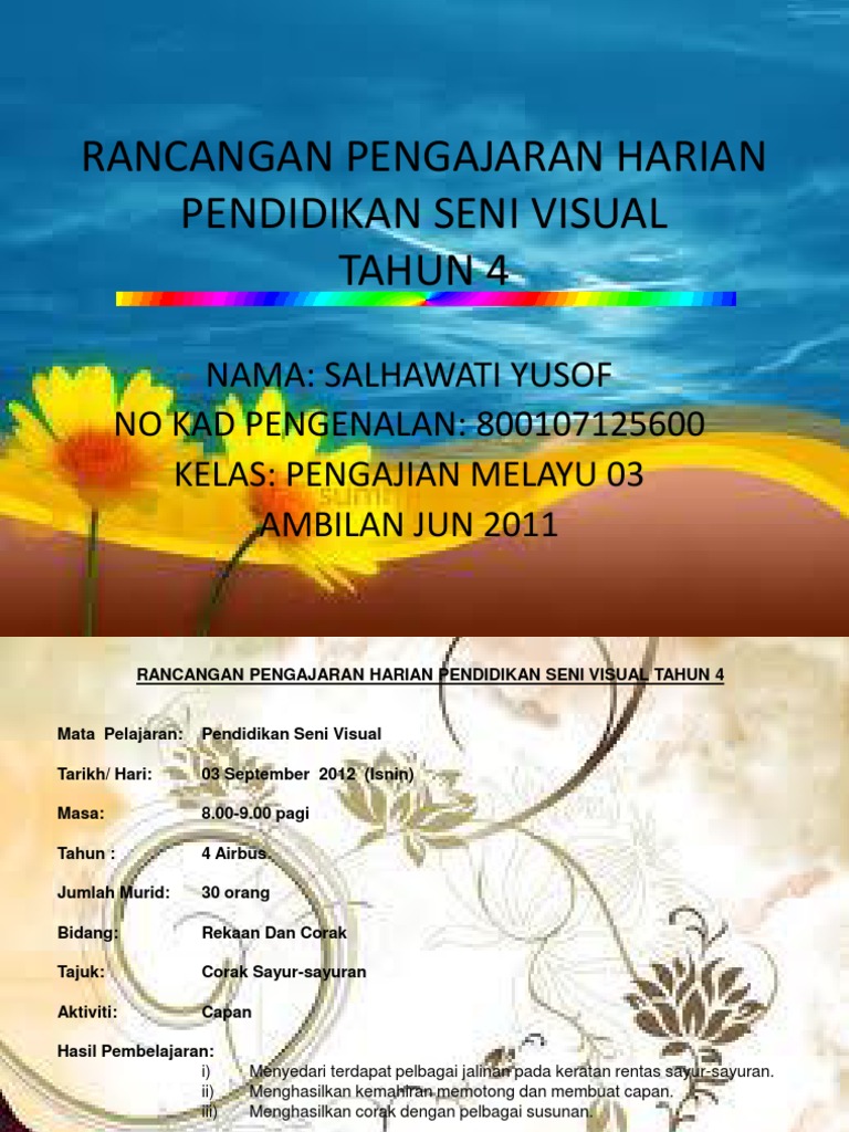 Rancangan Pengajaran Harian Pendidikan Seni Visualtahun 3 Pptx Powerpoint