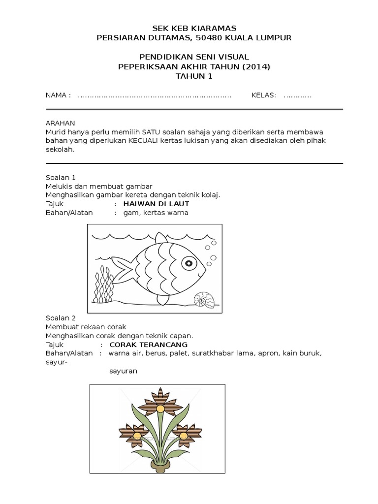 Soalan Pksr 1 Pendidikan Seni Visual Tahun 6
