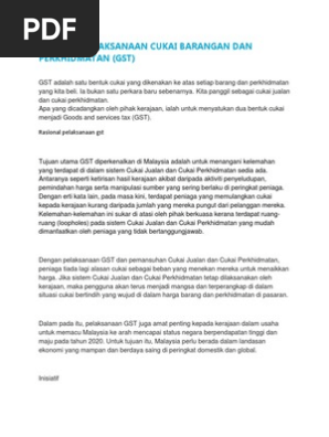 Pelaksanaan Cukai Barang Dan Perkhidmatan Gst Ke Pdf Document