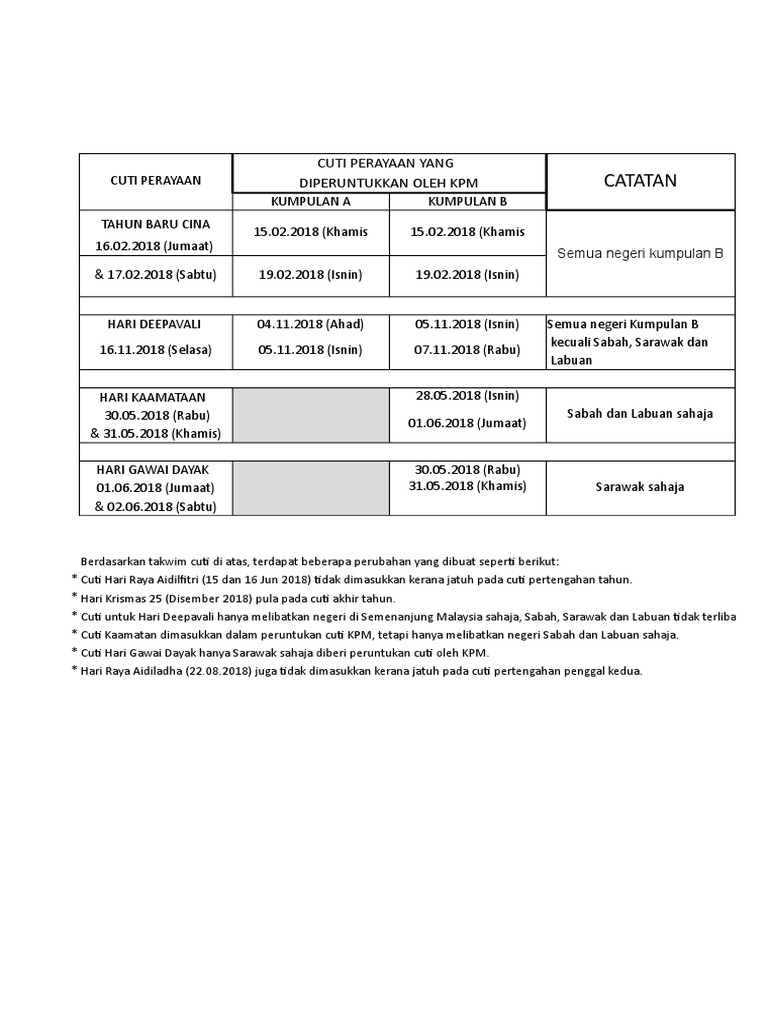 Cuti Perayaan 2018 Yang Diperuntukkan Oleh Kpm Pendidik2u