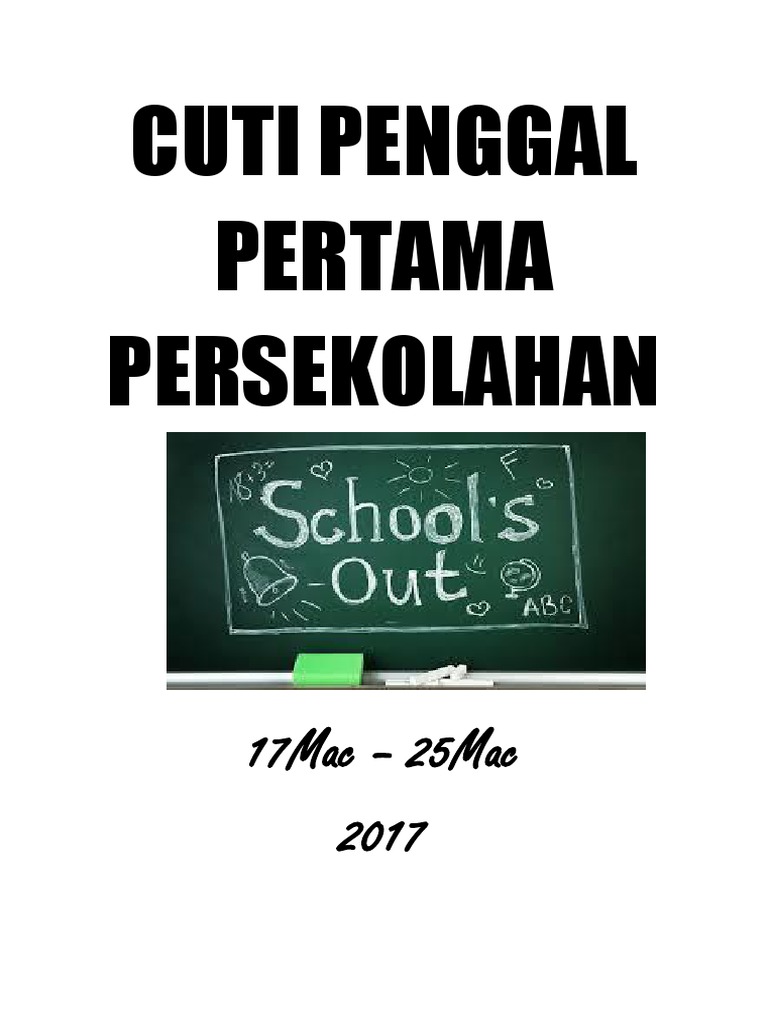 Cuti Penggal Pertama Persekolahan 17mac 25mac 2017