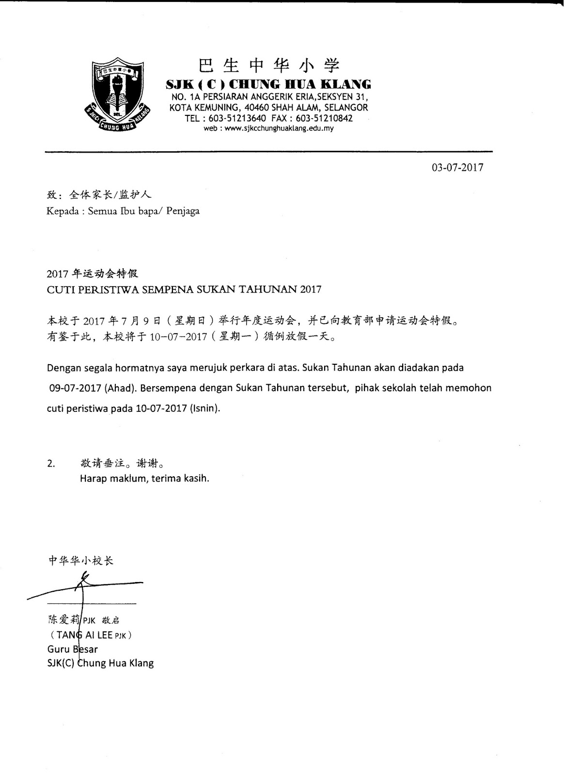 Sjkc Tun Tan Siew Sin Notis Cuti Peristiwa Hari Raya