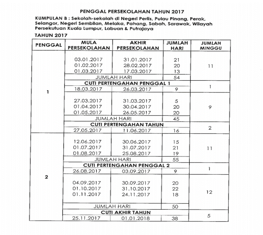 Tarikh Cuti Umum Dan Cuti Sekolah Kalender 2017