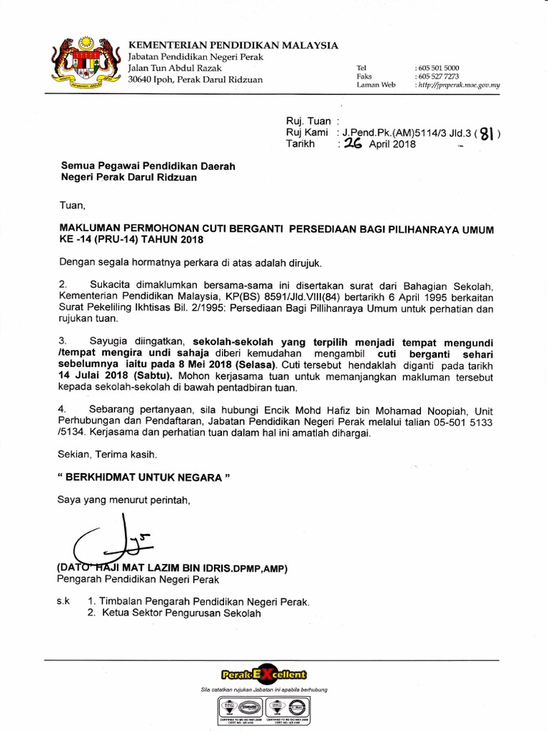 Pembatalan Hari Cuti Umum Bagi Negeri Perak Pdf Document