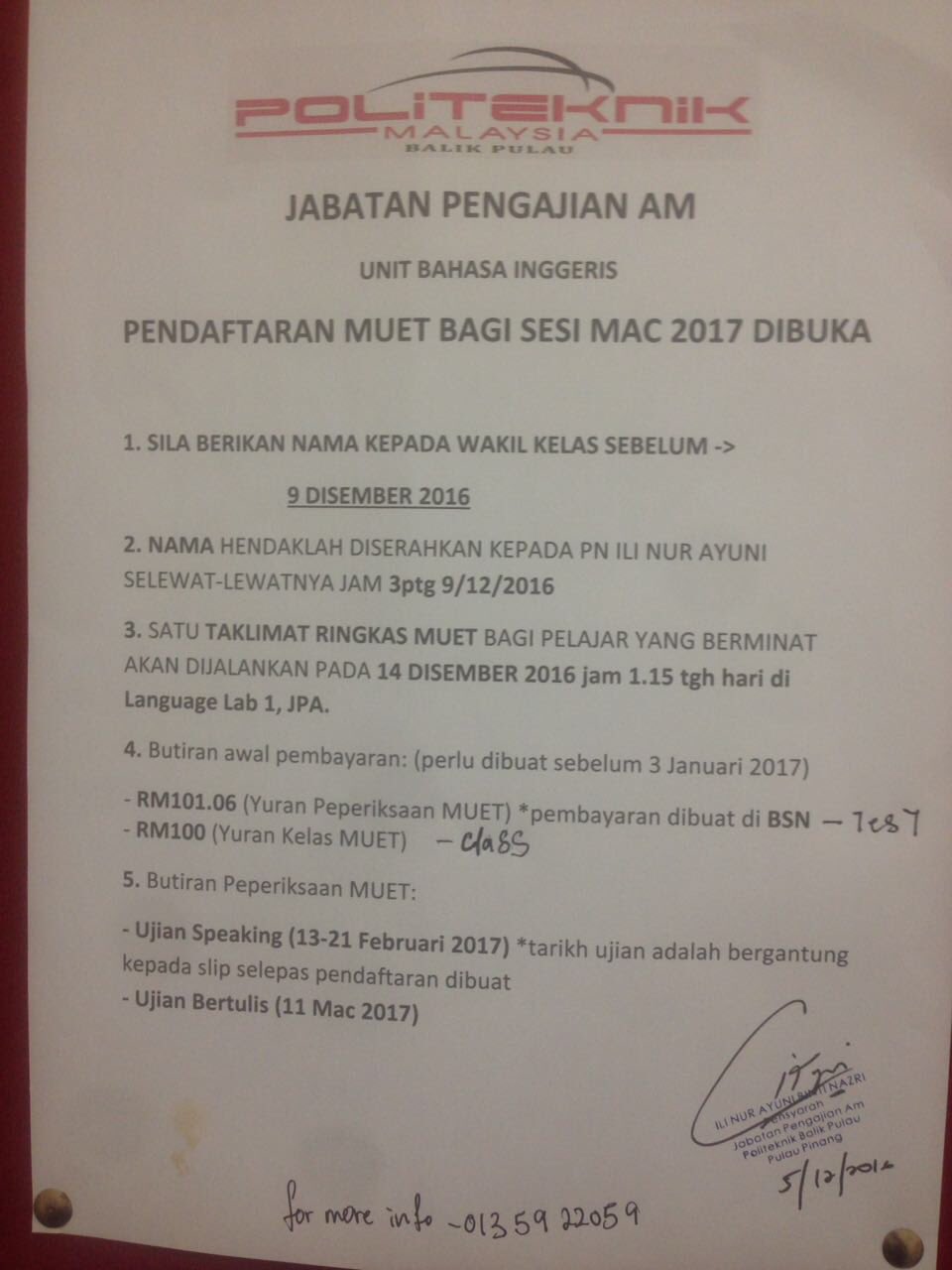 Twtpbu On Twitter Infopbu Pendaftaran Muet Bagi Sesi Mac 2017 Telah Dibuka Sila Berikan Nama Kepada Wakil Kelas Sebelum 9 Disember 2016 Https T Co Y2z8sxoeje