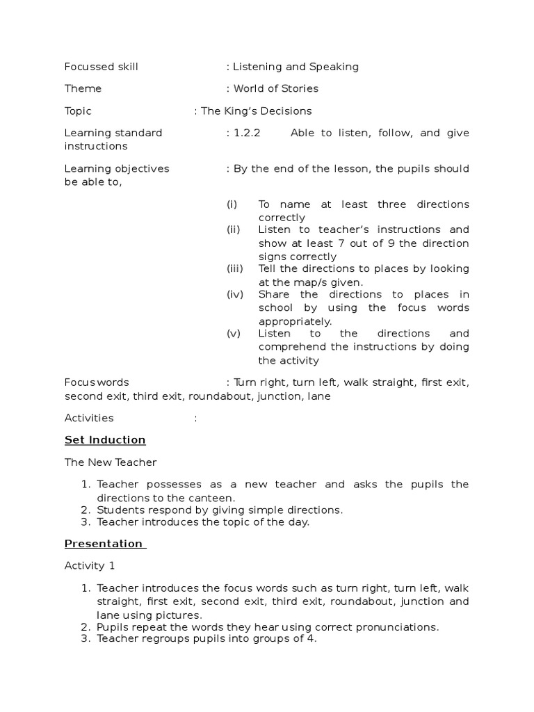 Lesson Plan Prka3012 Docx Daily Lesson Plan English Language Year 2 Date Day Time Class Focus Skill S Theme Topic Content Standard Learning Standard Course Hero